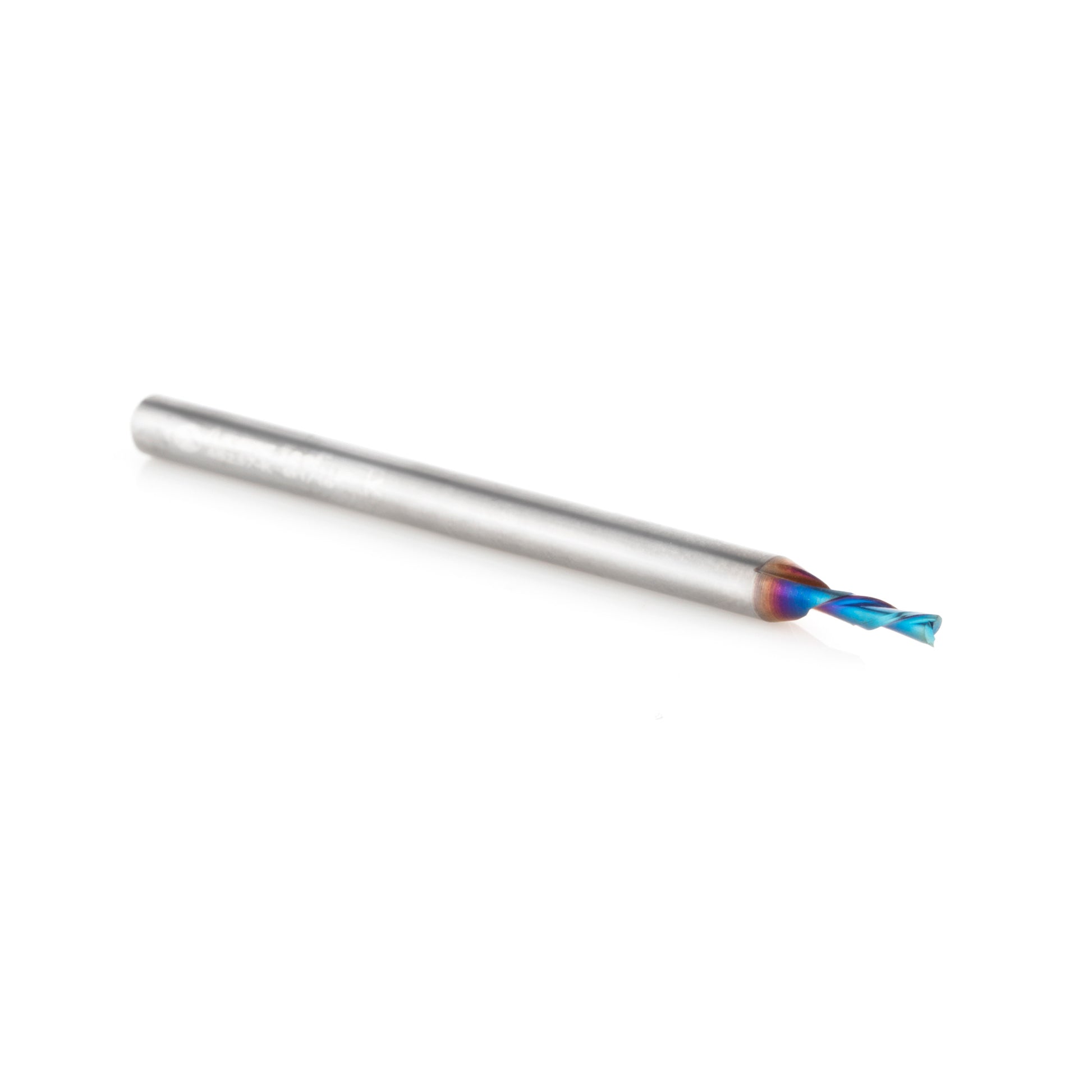 Spiral-flute bits combine a shearing action in cutting with an augering action in chip clearance. The shearing action yields an especially clean accurate cut while the augering action clears chips from the cut.The Down-Cut cuts from the surface down leaving a smooth edge at the surface.Special unique carbide grade increased clearance geometry and razor-sharp cutting edges with polished flutes provide a superior finish and longer tool life especially in abrasive materials. Great for production settings and excellent for creating grooves and dado cuts in particleboard, plywood and laminate. Primarily used on CNC machines and other automatic routers. Can be used with handheld and table-mounted portable routers.
