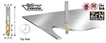 Optimized flute geometry and low Total Indicated Runout (TIR) guarantees clean cuts, essentially eliminates sanding and reduces chatter (where the machine or work piece vibrates) under high chip loads (when used with low TIR spindles)
