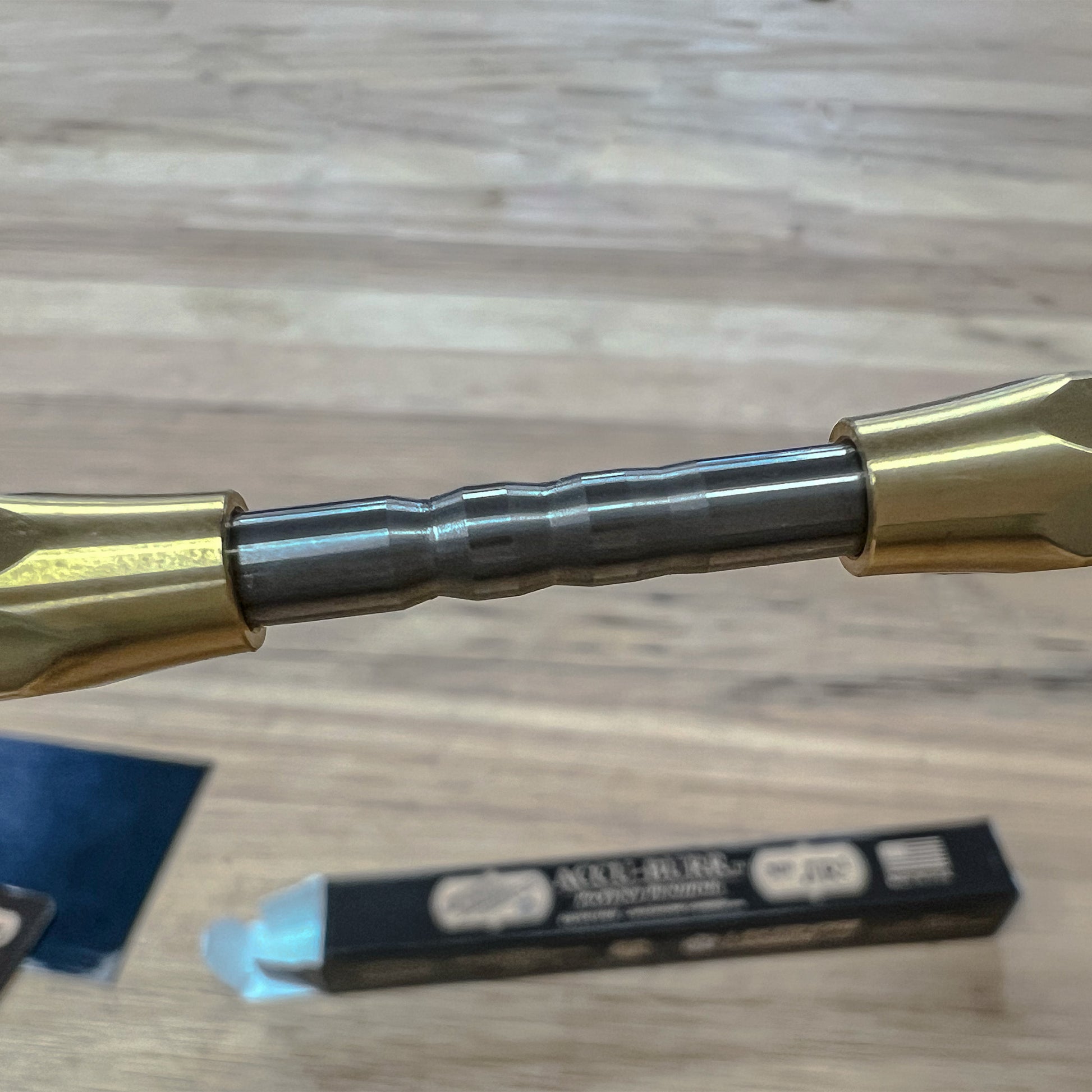 Never struggle to turn a burr on a card scraper again!The ACCU-BURR™ is simple, easy and repeatable. A completely new type of burnisher crafted in USA by Union Manufacturing Company in collaboration with Blackburn Tools & Lakeshore Carbide.The heart of the patent pending Accu-Burr™ burnisher is a 3/16" diameter carbide rod with three v-shaped grooves around the middle. These grooves are precision ground to turn a fine, medium, or coarse (5°, 10°, or 15°, respectively) burr simultaneously on both sides of any prepared scraper edge. Because quality and precision matter greatly for the function of this tool, we use a premium American-made grade of carbide, sourced from and ground by Lakeshore Carbide, a leading carbide tooling manufacturer.This clever tool will put a burr on both sides of your scraper at once, making it twice as fast! As you are not trying to angle the tool itself, this also makes turning a burr on curved scrapers, along with scrapers of varying thickness, far easier than ever before. The textured V-grooves on the carbide rod are both extremely effective, but also provide feedback through use - you can 'feel' the tool doing it's job. The three machined angles in the rod are all you will ever need whether your task is removing old finish or taking the final shavings for the perfectly prepared surface. This quality tool will provide exceptional results, faster than ever and even makes the task enjoyable! As beautiful to own as it is to use, investing in an Accu-Burr™ is an investment in yourself and the work you do. This tool should be in every woodworkers shop and is the only burnisher you'll ever need.Also available as the machined Carbide Rod without handles, so you can custom make your own - especially when paired with the beautiful Phosphor Bronze ferrules. Of course, if you're going to make the worlds best burnisher, you should pair it with a quality card scraper - enter the Union Manufacturing Blue Steel Scraper with a Flux-Cool™ finger saver!