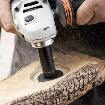 - Attaches to standard 4½” (115 mm) and 5" (125 mm) angle grinders with an M14 spindle