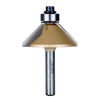 A two flute router bit for making 45° chamfers and decorative edges. The included bearing allows this bit to be used in a router hand held, or mounted in a router table.