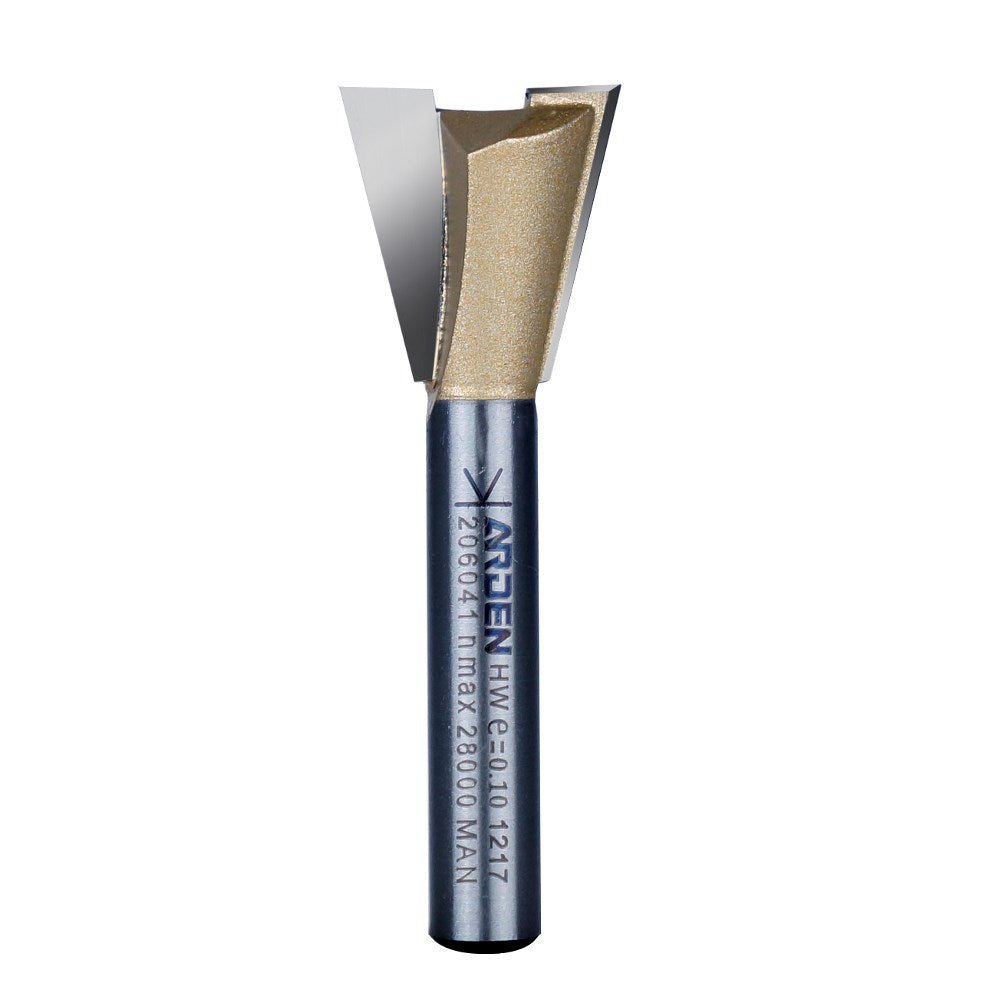 Two flute cutter for easy cutting of dovetails. For use in routers hand held, mounted in a router table or CNC.