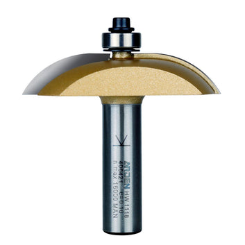 A raised panel bit with a sweeping extended cove shape. Used to create the panel component of a traditional style cabinet door in conjunction with Rail and Stile bits. These profiles need to be run at a much slower speed than other router bits due to their large diameter. Designed to be used ONLY in a router table.