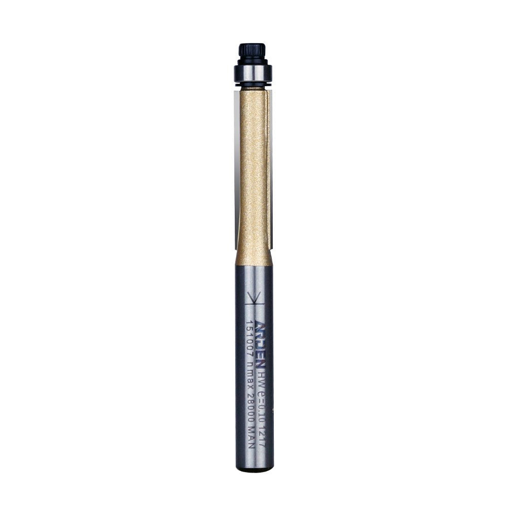 Pattern following bit used when following patterns or templates to give an extremely smooth finish using the two flute configuration. When making shaped objects such as scalloped edges, oval or roundtable tops, simply make a pattern out of material such as plywood for the bearing to follow. Also popular for laminate trimming.