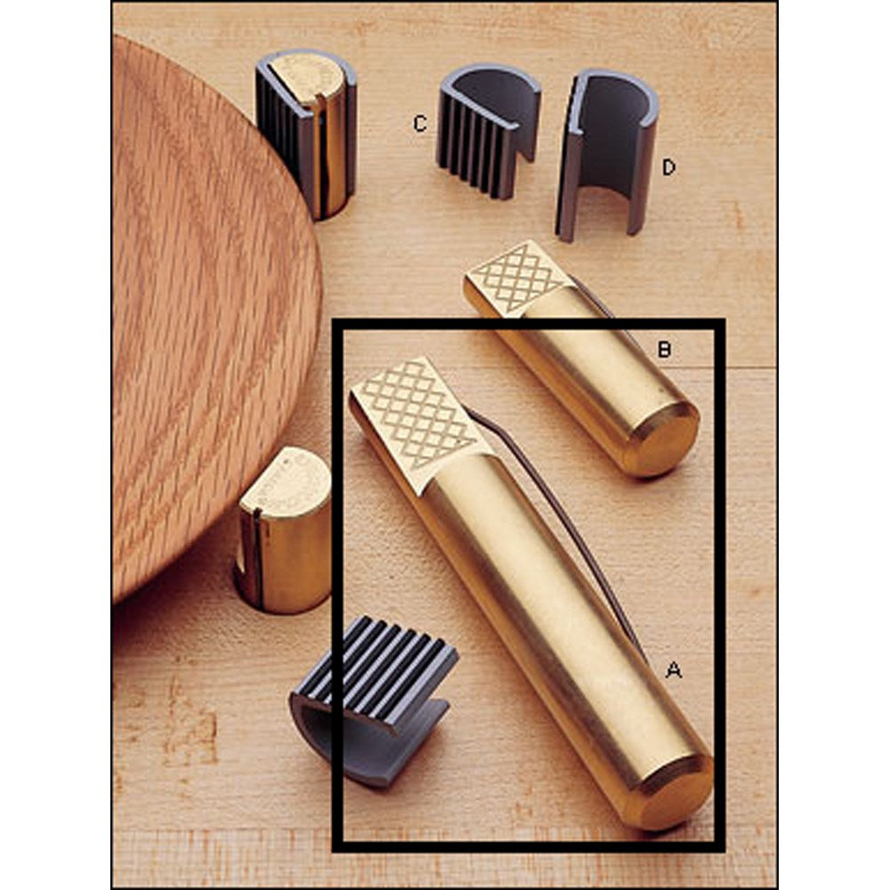 Veritas bench dogs are made from solid brass, making them non-corroding and less harmful to your tools. The face has a 2° inward facing angle and is cross hatched, both giving that extra grip. Fitting snuggly into a 3/4" hole in the horizontal surface or leg, a spring mounted into the side allows it to move freely, yet holds it at the desired projection. Sold as a pair.