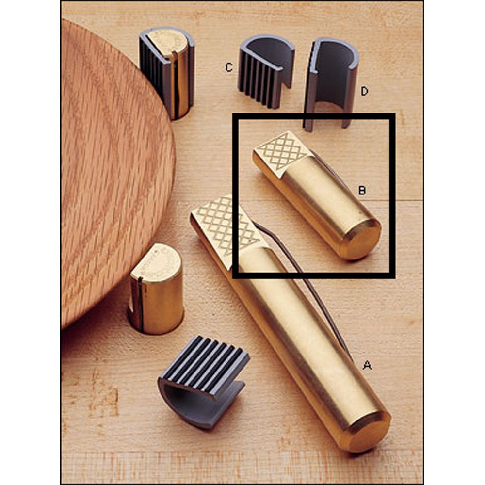 Veritas bench dogs are made from solid brass, making them non-corroding and less harmful to your tools. The face has a 2° inward facing angle and is cross hatched, both giving that extra grip. Fitting snuggly into a 3/4" hole in the horizontal surface or leg, a spring mounted into the side allows it to move freely, yet holds it at the desired projection. Sold as a pair.