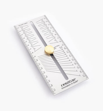 This bevel setter lets you set specific angles (from 0° to 60° in 1/2° increments) on a sliding bevel or a workpiece as well as read angles already set. Both functions are useful for dovetailing, for machine set-up, for polygon work, or for accurately fitting a piece in a restricted location. Common dovetail and polygon angles are highlighted on the reverse side.