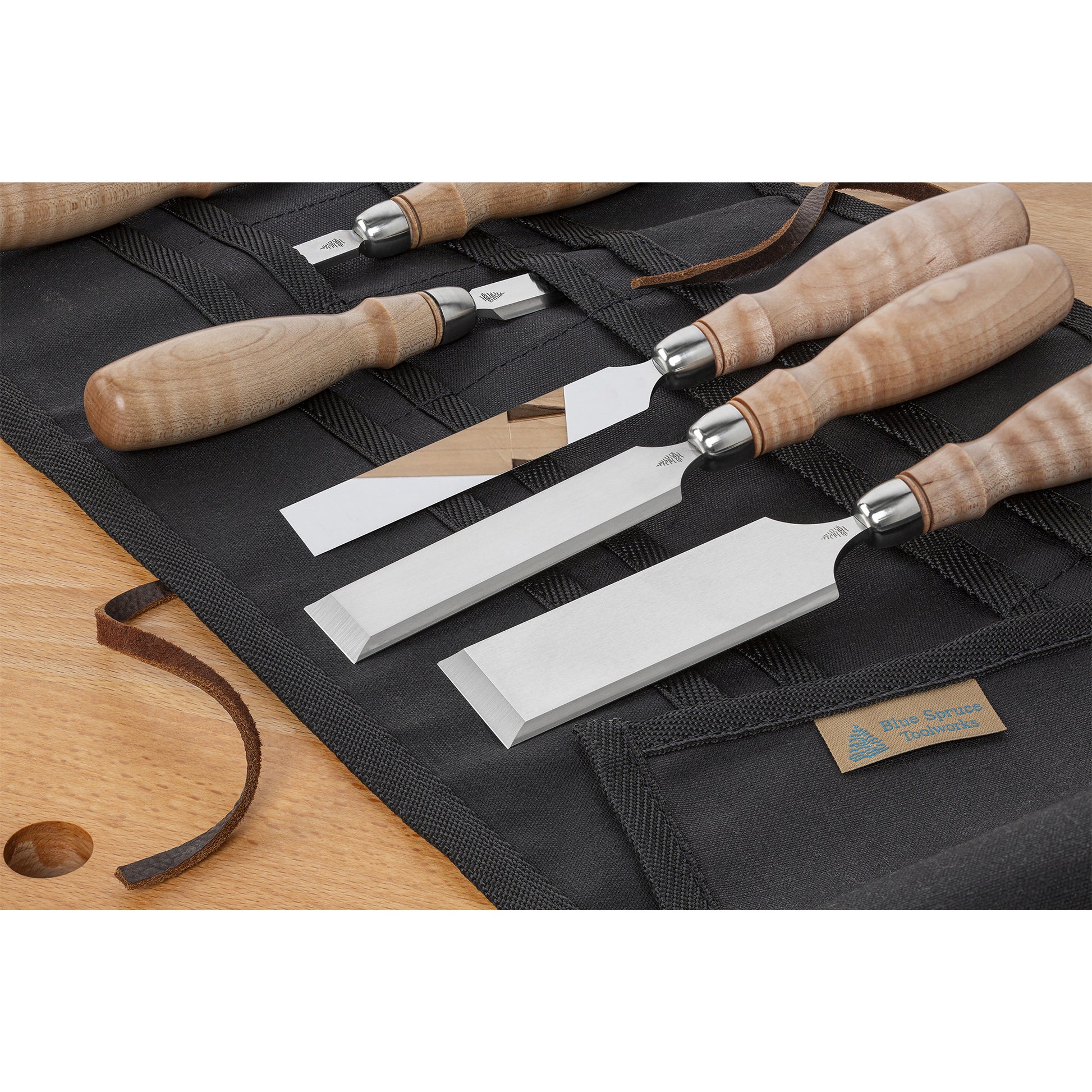 The Optima Dovetail Chisels from Blue Spruce Toolworks are perfect for light chopping, paring, and precision fitting of fine joinery. The 102mm long, 3mm thin blade is ideal for close-up work, providing clear visibility of your material. The unique concave side bevels allow the chisel to reach into the tightest corners of dovetail joints. Each chisel features a lapped and polished back, ensuring unmatched edge sharpness. Made from A2 tool steel, they are double-tempered and cryogenically treated for exceptional edge retention. The chisels are razor sharp and ready to use straight out of the box, with no need for additional sharpening.The resin-infused, figured Maple handles fit most hands comfortably for both mallet work and delicate paring cuts. Available individually for custom kit building, these chisels are a versatile addition to any woodworker's toolkit.
