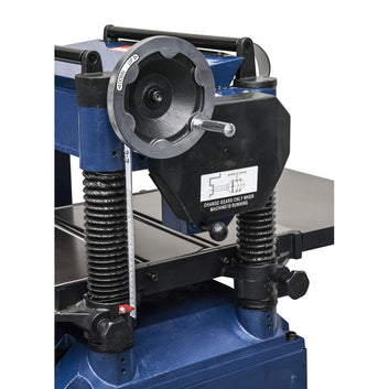 • Enhanced Productivity: A clever top-mounted roller system allows you to send timber back for repeated passes without having to carry it back to the infeed side. Paired with a 2-speed gearbox, this feature streamlines your workflow, making repetitive thicknessing tasks quicker and less physically demanding.