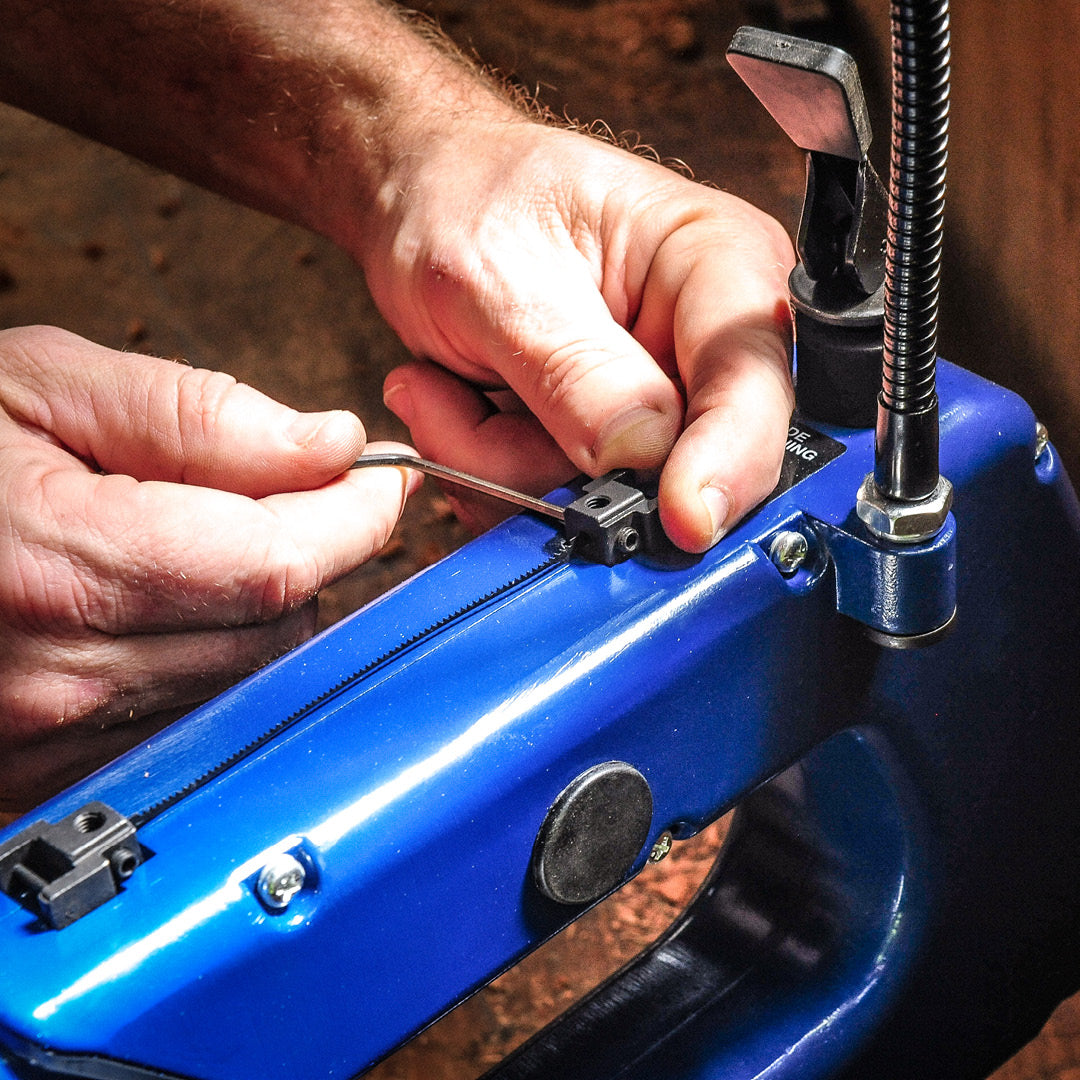 Transform your intricate woodworking dreams into reality with the Carbatec 400mm Variable Speed Scroll Saw with Rotary Tool. This precision-engineered machine combines a powerful 125W induction motor with electronic variable speed control, giving you complete command over every cut from delicate 550 oscillations per minute for fine detail work to swift 1,600 oscillations per minute for smooth curves. At just 10kg and 64cm long, this compact powerhouse fits comfortably in any workshop while delivering professional-grade results. The integrated foot switch keeps your hands free to guide your work with confidence, while the included 3.2mm rotary tool with complete tooling set adds versatility for sanding, grinding, and drilling starter holes. Whether you're crafting intricate toys, detailed puzzles, decorative signs, or elegant ornaments, this scroll saw brings your vision to life with minimal vibration and maximum precision.