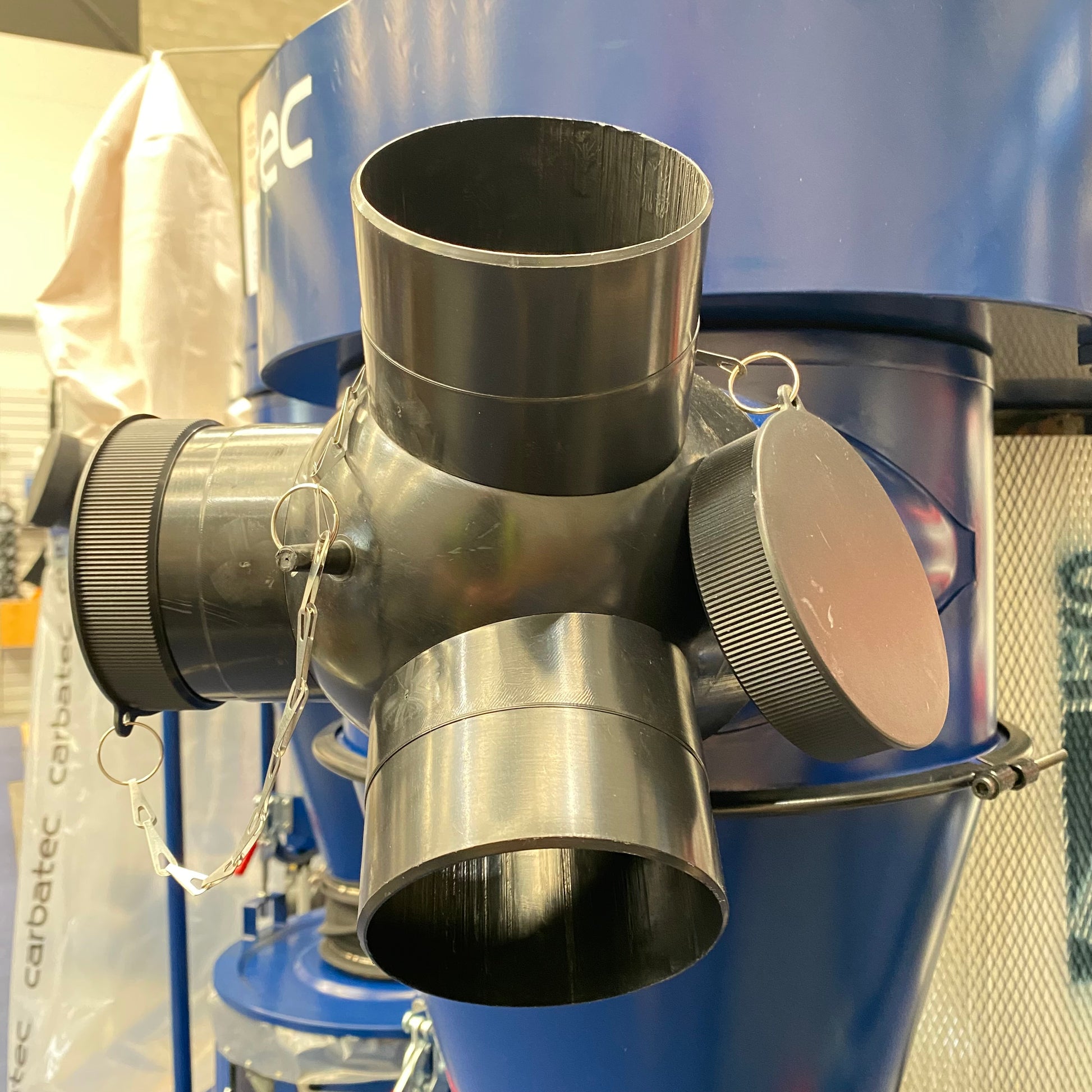 A cyclone dust collector works very differently from a traditional bagged type collector. This professional model has many features found on larger industrial units but with a far smaller footprint. It is designed to power smaller workshop collection systems while still being mobile enough to move from machine to machine if you prefer. The included remote control will allow you to switch your collector on/off or switch it on for a set period. We have also included the unique choice of a bag, or bagless collection system. Reusable plastic bags in your collection drum are quick and convenient for waste disposal, but they become waste themselves at some point. Mindful of our impact on the planet, we have designed our cyclone collector to run with or without these collection bags. Simply remove the integrated bag retention system and utilise the mobile drum itself as your collector. A cyclone has separate impeller housing attached to the top of a cone-shaped funnel. The sole purpose of the impeller is to create a high-volume airflow, which is drawn through the cone, creating a higher-pressure vortex (or cyclone) of incoming air. This fast-spinning air within the funnel separates the heavier wood chips and large dust particles from the fine dust, causing them to drop into the collection drum below (Stage 1). The very fine dust and the clean air pass through or are collected by a very fine, pleated cartridge filter (Stage 2). This two-stage process of separating the material reduces the rate at which the filter will clog up. This reduced clogging allows more air through the collector system. Our standard cyclones are highly efficient at removing dust particles down as fine as 1 micron; in fact, 99% efficient! Another advantage of this design is that the wood chips don't come into contact with the impeller (which would normally disrupt the airflow, dropping efficiency). This means that cyclones are often rated at lower CFMs (compared to traditional collectors), but the actual airflow and pressure in the dust network are kept running at their maximum for much longer. INTENDED USE:This dust collector only intends to collect wood dust and chips from woodworking machines. Do not use this dust collector to collect metal, dirt, pebbles, drywall, asbestos, lead paint, silica, liquids, aerosols, or any flammable, combustible, or hazardous materials. The diameter of the hose and the complexity of your dust network can directly influence the performance of your dust collection system. Hoses that are too small in diameter or too abruptly reduced from a large diameter can result in poor airflow and potential blockages. Flexible hoses that are run over long distances will also result in poor airflow, and dust can build up in the hoses. Changing hose sizes and lengths (increase or decrease) affects system airflow and static pressure in different ways. Changing corrugated or flexible hose to smooth rigid ducting will positively affect airflow efficiency. Consider one or all of these improvements: Shortening and limiting the runs of flexible hose (in favour of rigid ducting) can reduce your loss in airflow. Alter the layout of your workshop so the heavy waste producers are closer to your collector. Step down your hose diameters gradually and further away from the collector. This keeps a good balance between airflow and pressure. Avoid increasing hose diameters, as airflow, and pressure are both reduced.