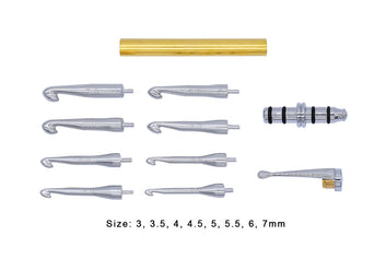 Turn custom handles and make the perfect gifts for anyone who loves crocheting, knitting or embroidery craft. From beginner to pro, no matter how skilled you are. In the Carbatec Crochet Kit, the size of interchangeable hooks comes marked for easy identification. Pen style with clip for easy access Single tube design, easy to turn Hooks included in the crochet hook kit: 3, 3. 5, 4, 4. 5, 5, 5. 5, 6, 7 mm Fits most pen boxes Compatible bushings available