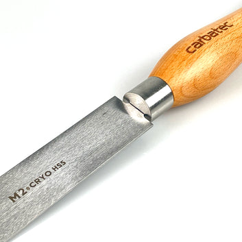 Introducing Carbatec's Next Level Woodturning Series!Building on the success and extremely positive feedback for our Carbatec Cryogenic Woodturning Sets, we are pleased to offer you an expanded capacity lineup of individual chisels! Featuring the same high quality Cryogenic M2 HSS, with 63-65 Rockwell lasting 2-3x longer than regular M2 HSS, these chisels offer a way to expand your turning capacity. We listened to turners needs and requests to develop and release these new individual tools. This new range feature a number of larger tools for heavier or bigger projects, along with a few more specialised tools not found in our sets. * This tool is "Euro Style" Parting tool, 2. 3 mm Thick x 32 mm in Diameter. That is heavy support on the vertical, for the fine parting edge action. Cryogenic treatment of M2 HSS means this steel has been subjected to a complex immersion procedure at temperatures as low as minus 195C. Sounds fancy (and cold!) but what does this mean? This treatment actually changes the structure of the steel, producing an ultra-fine and hard martensitic structure, supported by fine carbides. Erm, yes. .. And in plain terms? Additional wear resistance and edge holding capability of approximately 2 to 3 times that of regular M2 HSS !! Now that's an impressive edge!As per our sets, these tools feature Stainless Steel Ferrules, along with solid and smooth European Hardwood handles. * With the exception of the ever-popular 12 mm sized Bowl Gouge found in CT-WTC-6CT-CRYO due to popular demand!