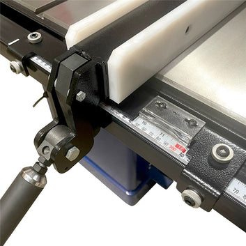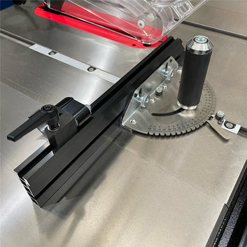 This model features a traditional Heavy Duty Steel "Biesemeier Style T-Glide" Lever Lock Fence with HDPE faces that offer little resistance for the workpiece. 30 steel rails (not alloy) give a cut capacity of 762mm to the right of the blade. The fence itself is fully adjustable for parallelism to the table, the blade and in resistance to travel meaning you can tweak it to suit your preference perfectly, while a magnified hairline provides easy to read measurements.The table is finely ground cast iron, as are the left and right extension wings. These extension wings feature grub screw adjustment for levelling to the main table. The additional right fence extension infill is solid phenolic resin for stability and longevity.Finally, we've also included a Premium Mitre gauge setup as standard! Fitting into the standard 3/4" x 3/8" T-Slots, this unit features positive locks at 5 degree intervals, an oversized comfortable rubber encased handle and an adjustable alloy extruded fence with flip stop - gone is the cheap basic plastic unit of yesteryear!Fitting a standard 10" blade (not included) provides 76mm of cutting depth at 90 degrees, on a standard 5/8" arbor. The machine is fully dado capable with a maximum 20.6mm width of cut and a dado table insert has been included.