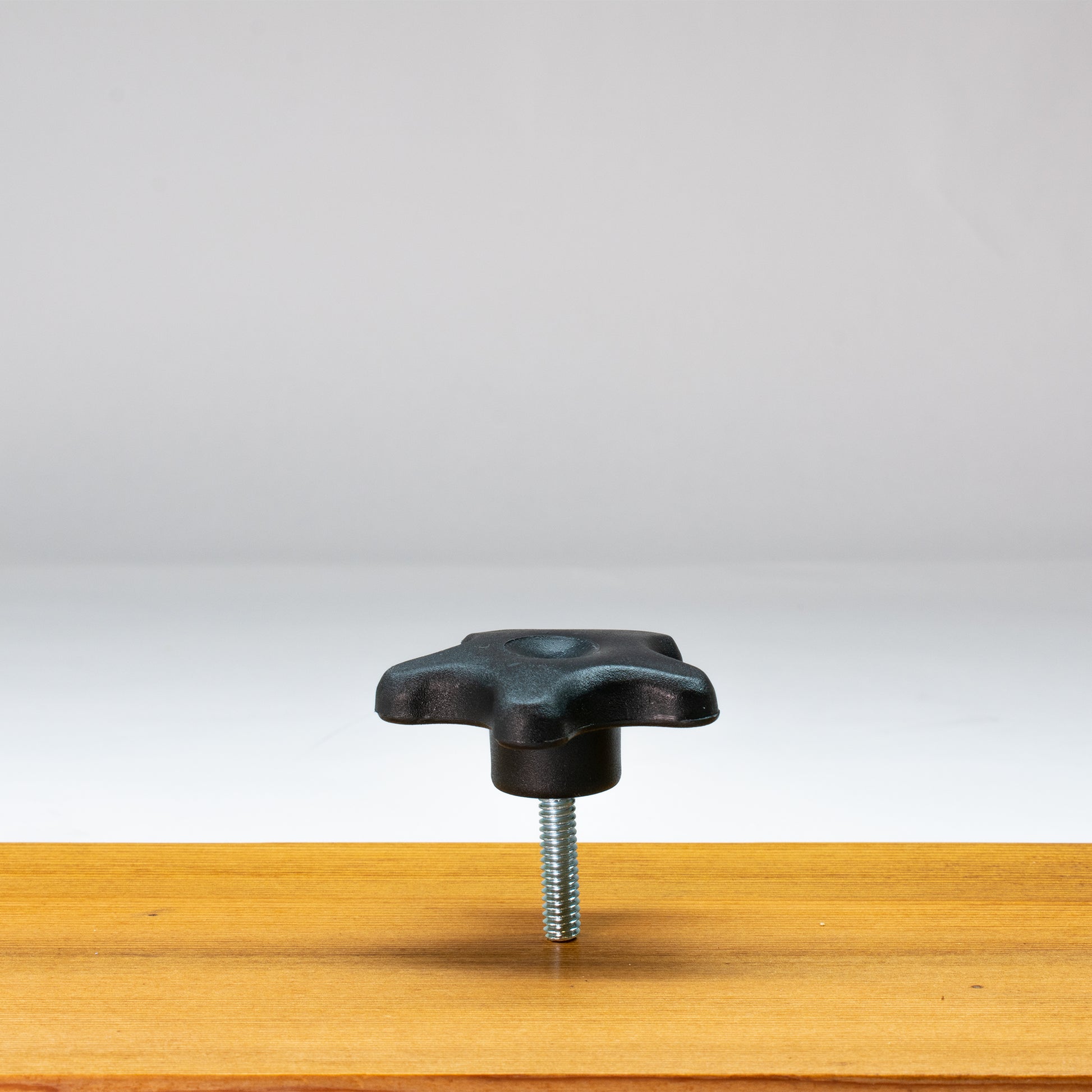 Carbatec's range of quality hardware knobs, handles, inserts and bolts, are perfect for shop made custom jigs, creating purpose-built hold downs, slides, tools and many other handy inventions in your workshop. They are also great for topping up your jig hardware kits, or replacing the odd lost knob or T Bolt from many different accessories. Available in small pack sizes (quantity depending on type of hardware). The Large Star 5 prong Knob is 56 mm diameter with 1/4" x 20TPI 25 mm stud.