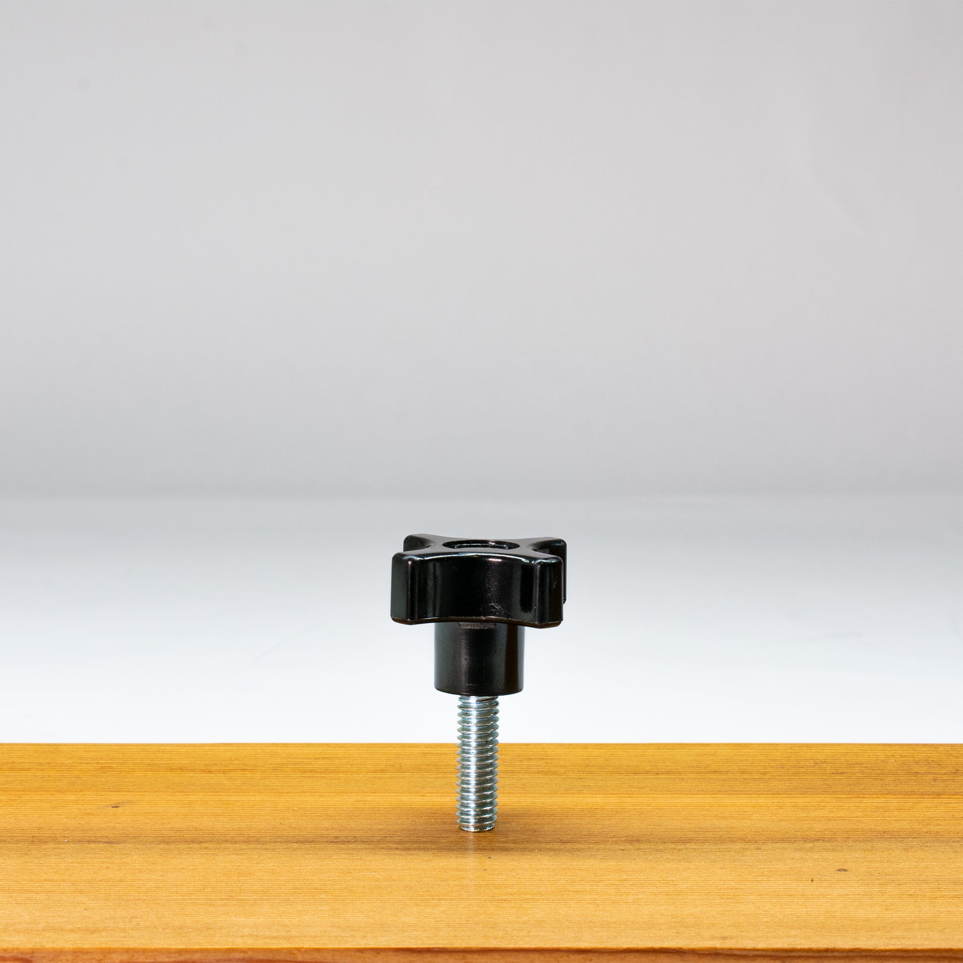 Carbatec's range of quality hardware knobs, handles, inserts and bolts, are perfect for shop made custom jigs, creating purpose-built hold downs, slides, tools and many other handy inventions in your workshop. They are also great for topping up your jig hardware kits, or replacing the odd lost knob or T Bolt from many different accessories. Available in small pack sizes (quantity depending on type of hardware). The Small Cross 4 prong Knob is 35 mm diameter with 5/16" x 18TPI 25 mm stud.