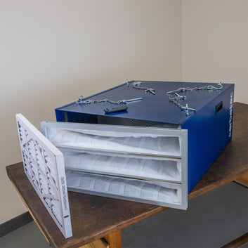 The standard AF-1000P filters 99% of particles 5 microns or larger and 85% of particles down to 1 micron. It features pre-set run times of 1, 2, or 4 hours. This unit also has a diffuser on the exhaust side, providing a more even spread of clean air.
