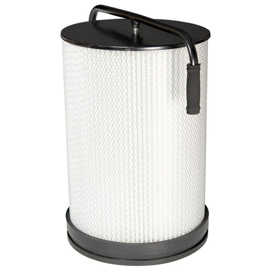 Upgrade your workshop's air quality with the Carbatec Pleated Filter Cartridge, designed for superior dust collection. This highly efficient filter captures particles as small as 1 micron, providing a cleaner and safer workspace. Its pleated design dramatically increases the filter's surface area, which improves airflow and suction power from your dust extractor. You can easily maintain performance by rotating the top handles, which activates internal rubber paddles to dislodge settled dust. This ensures your system runs at peak efficiency, protecting both your lungs and your projects from fine dust.