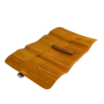 Each piece of leather is hand selected for the purpose of being hand cut and sewn to make these chisel rolls. Solid brass tubular rivets are then used the bind the pieces together. Heavy duty stitching and quality nylon round off these exquisite Archer accessories. Tool Roll only - this listing does not include chisels. Chisels pictured in tool roll for illustration purposes only.
