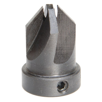 The Type "C" countersink is designed for use in all woods, plastics, and non- ferrous metals. The countersink is held in place with 2 hex socket set screws fastened into the flutes of the drill. This countersink can be mounted on taper point, brad point and regular point drills.