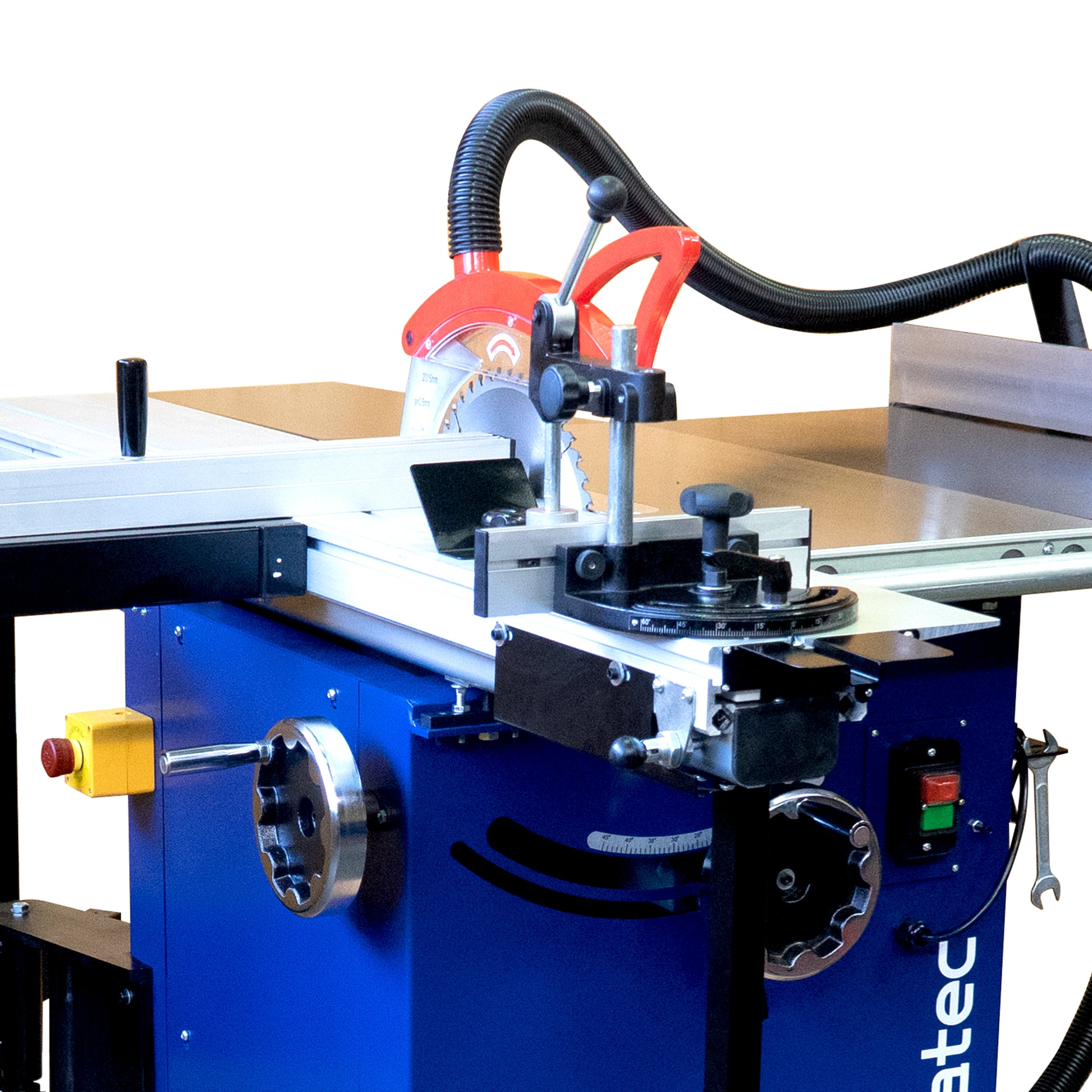 • Enhanced Safety: Features include a blade guard with dust hose, riving knife, micro switches, and an E-Stop for your peace of mind.