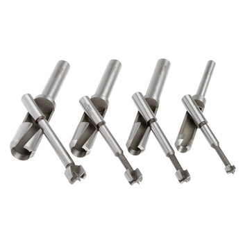 Create flawless plugs and matching holes with the Carbatec Drill & Barrel Plug 8-Piece Cutter Set. This set allows you to hide small blemishes in your timber using plugs of the same species or create a stunning contrast for a unique decorative effect. Designed for use with a drill press, the hardened carbon steel barrel cutters produce perfect plugs up to 50mm long. The set includes the four most popular small sizes to suit a variety of woodworking projects. Elevate your craftsmanship and achieve a professional finish on every piece.