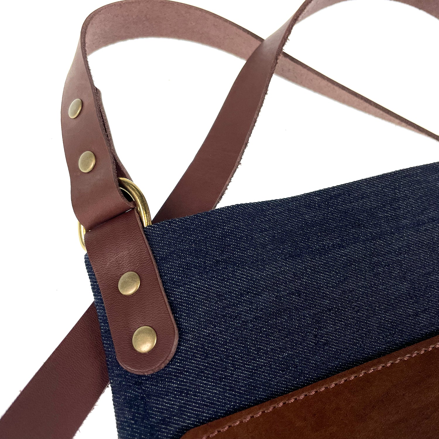 En Mina Leather products are individually handcrafted from premium Australian materials, on the Sunshine Coast of Australia, by Isabel.This Carver's Apron features a light denim fabric with a full-grain tanhide patch and straps. The core fabric on this apron was selected due to its light, breathable qualities. It is equally comfortable on a hot summers day, as it is over layers in winter. It doesn't sit heavy or restrict movement, yet provides a protective layer for your chips and shavings, while the full tanhide leather patch provides robust protection against blades or stock holding, when whittling close to the body.So whether Netsuke is your game or you're carving the worlds finest spoons, you can do it in style with En Mina's Carving Apron!The apron measures 720mm top to bottom and 620mm at its widest point. The leather patch is approx 220x190mm. Two full leather cross-over straps are adjustable, making this apron "one-size-fits-all".This apron will quickly become a loved item in your workshop and all the while, you can be satisfied you just supported a small local artisan's work. Supplied in an Australian made cotton gift bag.About the maker - With a commitment to producing high quality goods, Isabel individually hand makes every single En Mina Leather product. Quality manufacture starts with quality materials, so naturally, only the finest Australian leather is used. You also won't find any plastic here - all En Mina products are supplied in hand-made cotton bags, supporting yet another Australian business! With attention to detail only found in individualy crafted goods, En Mina Leather goods are the perfect gift for any woodworker.