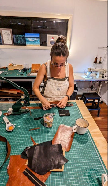 En Mina Leather products are individually handcrafted from premium Australian leather on the Sunshine Coast of Australia by Isabel.Proper storage and care for your tools are paramount to their longevity and performance, and you won't find a better option than En Mina's Leather Tool Rolls! Leather pouches, sheaths, rolls and wraps are not a new idea. In fact, they've protected tools for as long as we've been forging them and for good reason - they are the perfect combination of a simple yet effective solution. They look beautiful, feel beautiful, and excel at protecting your tools against the natural elements and keeping the razor edge protected against nicks in storage. They age well and, looked after, they will provide you with many, many years of service.This Chisel Roll is made of high-quality Australian suede leather, with a soft feel and supple ability to roll up. Designed for cabinet chisels and with 12 pockets, it will hold a range of sizes up to 42mm wide x 285mm in length. Fully opened, this roll measures 650mm wide and 320mm tall. A simple leather strap with twin "D" buckles completes the tool roll to bind your chisels safely away until needed next.There are many tool rolls on the market, but you'll be hard-pressed to find a higher quality example, and all the while, you can be satisfied you just supported a small local artisan's work. Supplied in an Australian-made cotton gift bag.About the maker - With a commitment to producing high-quality goods, Isabel hand-makes every En Mina Leather product individually. Quality manufacture starts with quality materials, so naturally, only the finest Australian leather is used. You also won't find any plastic here - all En Mina products are supplied in hand-made cotton bags, supporting yet another small Australian business! With attention to detail only found in individually crafted goods, En Mina Leather goods are the perfect gift for any woodworker.*NB: Tools not included