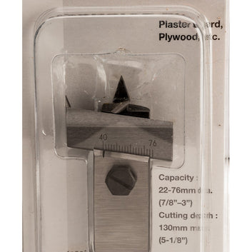 This expanding bit is both easy to use and features positive adjustment for holes between 22mm and 76mm. For use in a drill press.