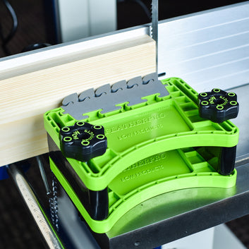 Bow FeatherDUO Stackable Featherboard offers all the breakthrough benefits of the FeatherPRO featherboard in a raised platform. Ideal for feeding taller material on Table Saws, Band Saws and Router Tables. FeatherDUO includes two separate FeatherPRO featherboards along with two risers and long bolts for a maximum stackable height of 89mm (3.5). You can also stack the two featherboards without the risers if desired.