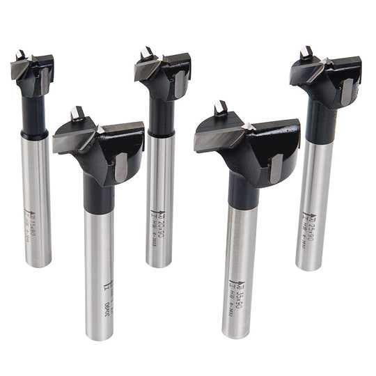 Buy as a set and save!!Used for drilling blind holes into solid wood, wood composites and plastic laminated materials for concealed hinges, creating holes or recesses for hardware or accessories or simply to remove waste in wood turning. With the cutting tips being Tungsten Carbide, the user will get and life before sharpening is required, therefore extending the life of the bit. The sharp cutting edge will also give a superior cut, both with efficiency, and finish. Supplied in a plastic box with a clear top, so as to protect the bits during transportation, keep them safe for storage and see which is in use and where it is to be returned afterwards. Includes diameters: 15mm, 20mm, 25mm, 30mm and 35mm.