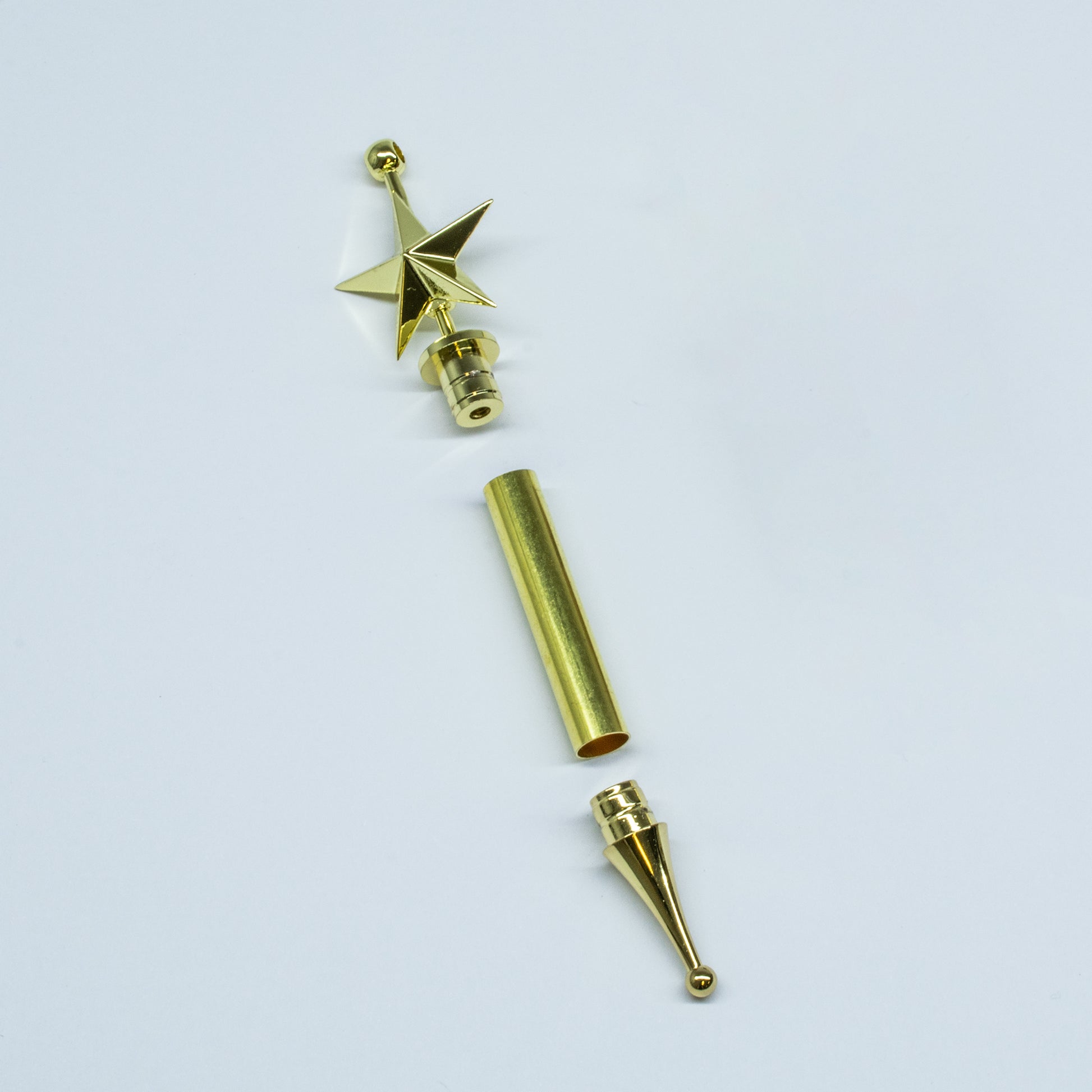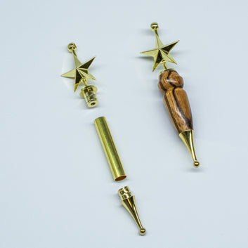 The Star ornament kit is plated with rich gold colour to produce a holiday glow on your Christmas Tree. This kit uses a single tube with press in components that make it easy to turn. Have some fun and turn a custom ornament for family and friends that they'll cherish for years to come.
