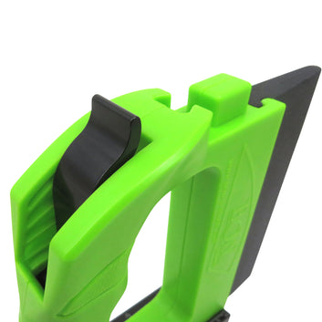 Flexible silicone feather allows for variation in applied pressure. Feather also accommodates variations in shape and thickness of material. Works great on all materials including thin stock, odd shapes, tall panels and more.