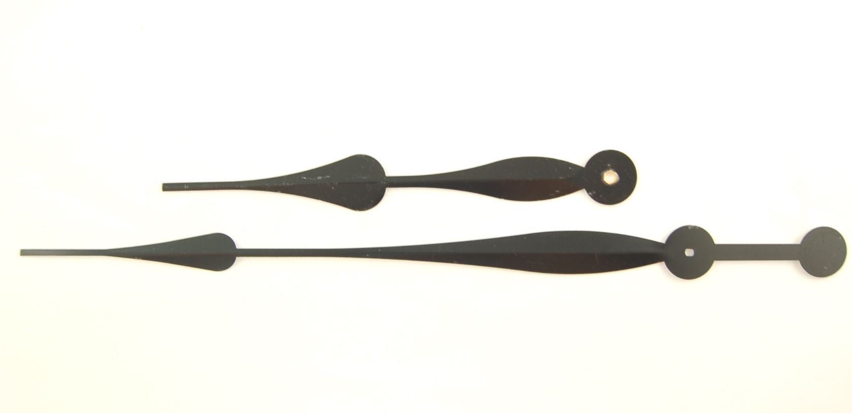 Black contemporary hour and minute hands to suit our American made higher torque clock movements. Perfect for larger clocks. Not suitable for normal CLK-7,000 series or continuous sweeping CLK-CS series. Length of minute hand: approx 305 mm or 12 inches Length of hour hand: 203 mm
