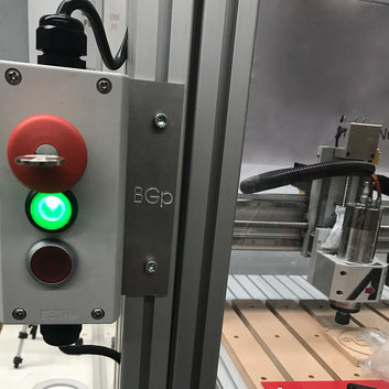 • Includes a three button panel with lockable E-stop, Green LED to indicate machine active or not and a Stop Cycle button