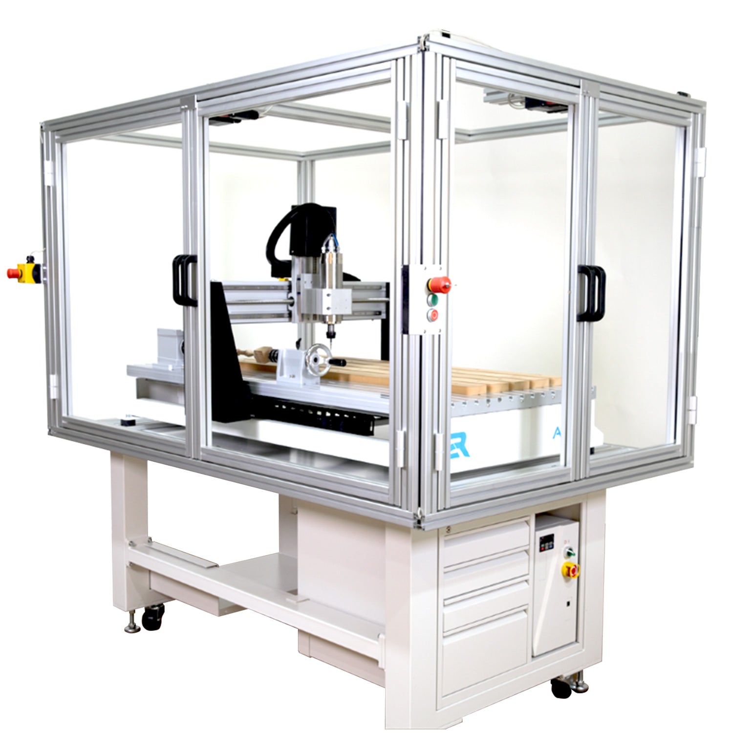 These enclosures are custom designed and manufactured by an engineer in Australia, specifically for Schools and other institutions that require the highest level of safety and regulatory compliance. This unit is for the i2R A24 Series CNC Machine and features double side access doors, along with;Each system consists of the following: