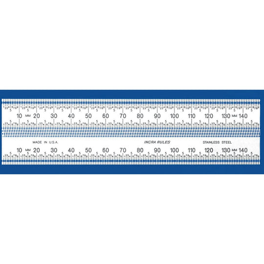 Available in 300mm or the 150mm lengths; Incra's Metric Marking Rules are precisely what's needed for accuracy. These rules offer marking holes at every 1/4 millimeter! This is unmatched in the industry of marking rules. (150 mm marking rule shown.)