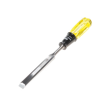 Made for Carbatec in Japan; these western style bevel edge chisels are ground; honed and ready for use straight out of the packet. The ovoid shaped handles are extremely ergonomic and allow for a very firm grip. The handles are almost indestructible; being made from a butyrate compound. The high-carbon alloy steel blades will keep a keen edge for longer. Highly recommended. Overall length of each chisel is approximately 250mm. Buy all nine chisels ( MBE-SET ) and save nearly 10%!