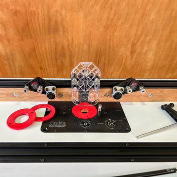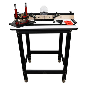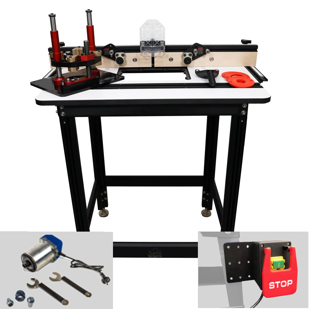 We have made the decision to offer a remarkable JessEm/Carbatec router lift and table package. This comprehensive table system showcases the JessEm Mast-R-Lift II Router Lift, with its partner, the JessEm Mast-R-Top, offering an outstanding combination of features that are typically challenging to find at such a competitive price. This components complement the Carbatec RT-RPU2400 Router Power Unit, along with our own heavy duty NVR In-line power switch, the RT-SWTASY. This exceptional deal presents an a great opportunity to acquire a complete router table package with a range of highly desirable features.NOTE: NVR Power Swtich supplied may vary from illustrated.