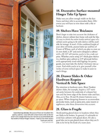 For two decades, Hiller has made a living by turning limitations into creative, lively and livable kitchens for her clients. Her new book, Kitchen Think, is an invitation to learn from both her completed kitchen designs (plus kitchens from a few others) and from the way she works in her Bloomington, Ind., workshop.Unlike most kitchen design books, Kitchen Think is a woodworkers guide to designing and furnishing the kitchen, from a down-to-the-studs renovation to refacing existing cabinets. And she shows you how it can be done without spending a fortune or adding significantly to your local landfill.The first requirement is simply to think," Hiller writes, "where you are in life; what resources you have access to in terms of money, interesting materials, or time; the architectural style of your home and so forth.Yes, there are hundreds of pretty full-color photos of well-designed kitchens, which are organized into 24 case studies throughout the book. They range from the sculptural (kitchens by Johnny Grey and Wharton Esherick) to kitchens of a more recognizable form.But theres also a heavy dose of practical instruction: how to build cabinets efficiently, how to make a basic kitchen island, how to build a wall-hung plate rack. Plus butt-saving advice that comes only from experience like how to maximize space in inside corners, how to scribe cabinets and countertops into odd spaces and how to make sure youve left ample space for hardware.All of this is built on a foundation of research into kitchens from the past. Hillers historical perspective on design might just change your mind about what makes a good kitchen. It doesnt have to be walls of built-in cabinets. So whats the alternative?You just have to think.The book is intended for: Woodworkers, whether professional or not, who would like to expand their minds on the question of kitchen design, the culture of remodeling, materials and techniques used in kitchens Homeowners with some woodworking and home-renovation skills who would like to remodel their own kitchen, including building their own cabinets Homeowners who want a deeper understanding of what goes into a thoughtful kitchen remodel done by professionals Homeowners and others (who may not own a home) looking for design inspiration and unconventional, non-consumerist ways of thinking about kitchen design and remodeling.