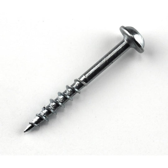 Zinc screws are recommended for a wide variety of indoor projects where moisture is not a concern.Coarse thread screws are used with softwoods - as well as plywood, particle board and MDF.Maxi-Loc Kreg Screws have a large head that provides maximum bearing surface as the screw pulls tight in the pocket.
