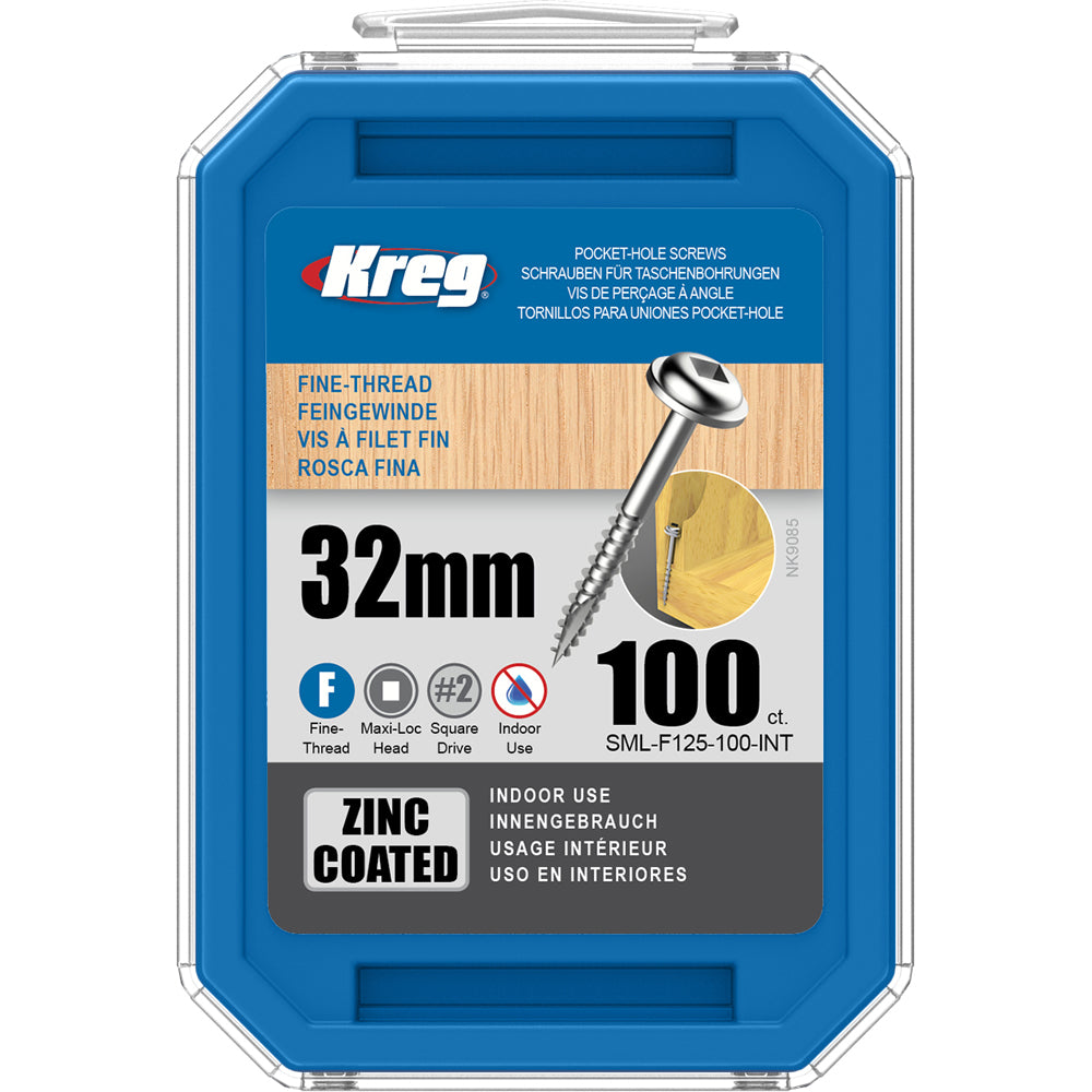 Kreg Pocket Hole Screws - 32mm Fine/MaxiLoc Head - Zinc - 100 pack