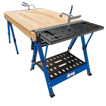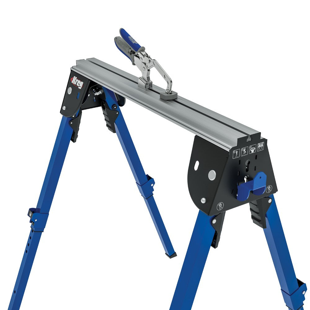 The Kreg Track Horse makes it easy to set up a sturdy work support anywhere to make any place your workspace. Packed with versatile features, the Track Horse has capabilities beyond an ordinary sawhorse. Constructed from steel and aluminium, it is sturdy with a capacity of 997 kg per pair, so is capable of handling those larger jobs and bogger work pieces.