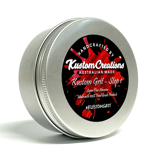 Handcrafted in Australia, Kustom Grit Step 1 Superfine Abrasive paste is equivalent to 50,000 Grit! The ultra-fine polishing particles are blended into a proprietary base of hard waxes, meaning it can in fact be used as a stand-alone finish for small objects.