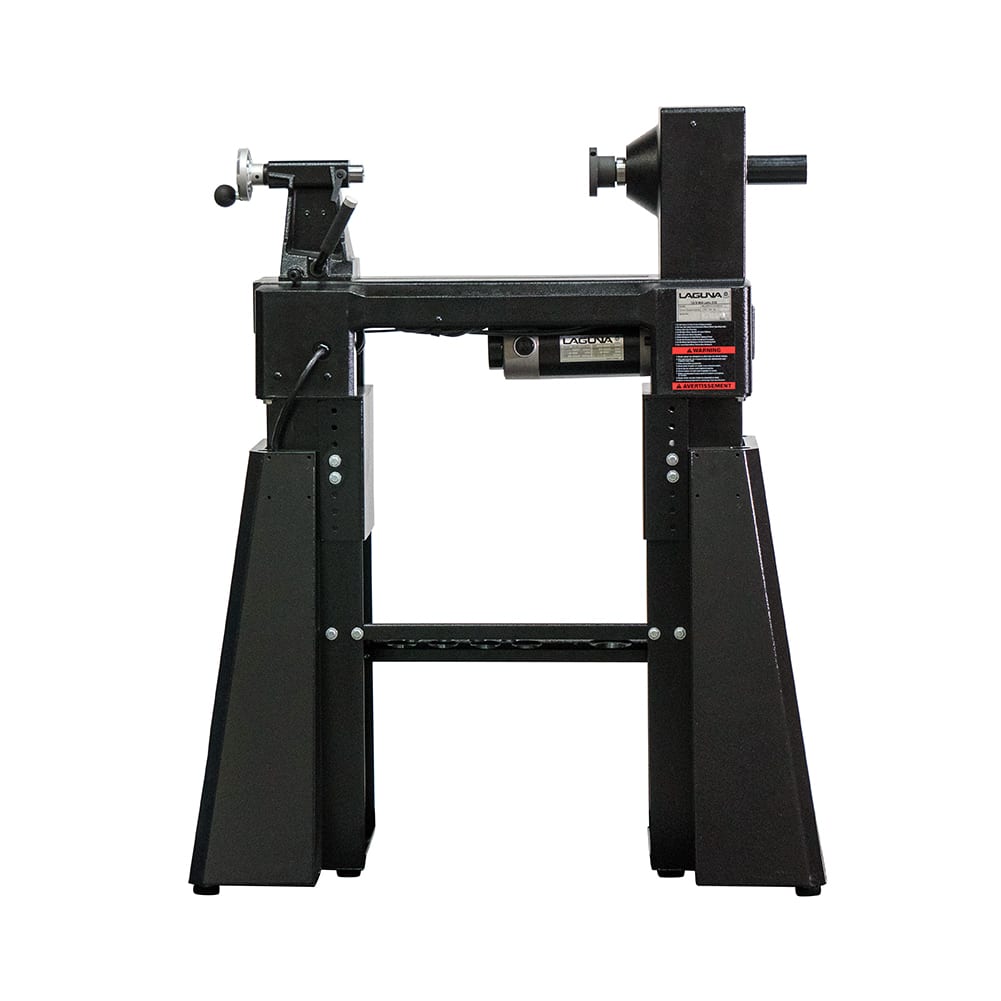 Never has a Midi Lathe been supported this well!This stand has been designed from the ground up, specifically for the Laguna 12/16 Midi-lathe. Adjustable from 990mm - 1143mm (39 45) at spindle center to suit your preference and height. It is extremely robust and well constructed, turning your midi-lathe from a bench-top model into a fully stable compact floor mount woodturning station! Made from a heavy-gauge folded steel, with a wedge-shaped design and featuring an ergonomic tilted multi tool shelf, for keeping your most used tools ready at hand.Net Weight of the stand is a whopping 37kg (81 lbs) alone, making the Revo 12|16 mounted on the stand a combined 90kg (199 lbs). That is a serious, stable and heavy duty midi-lathe!*NB: Lathe shown for illustrative purposes only, not included.