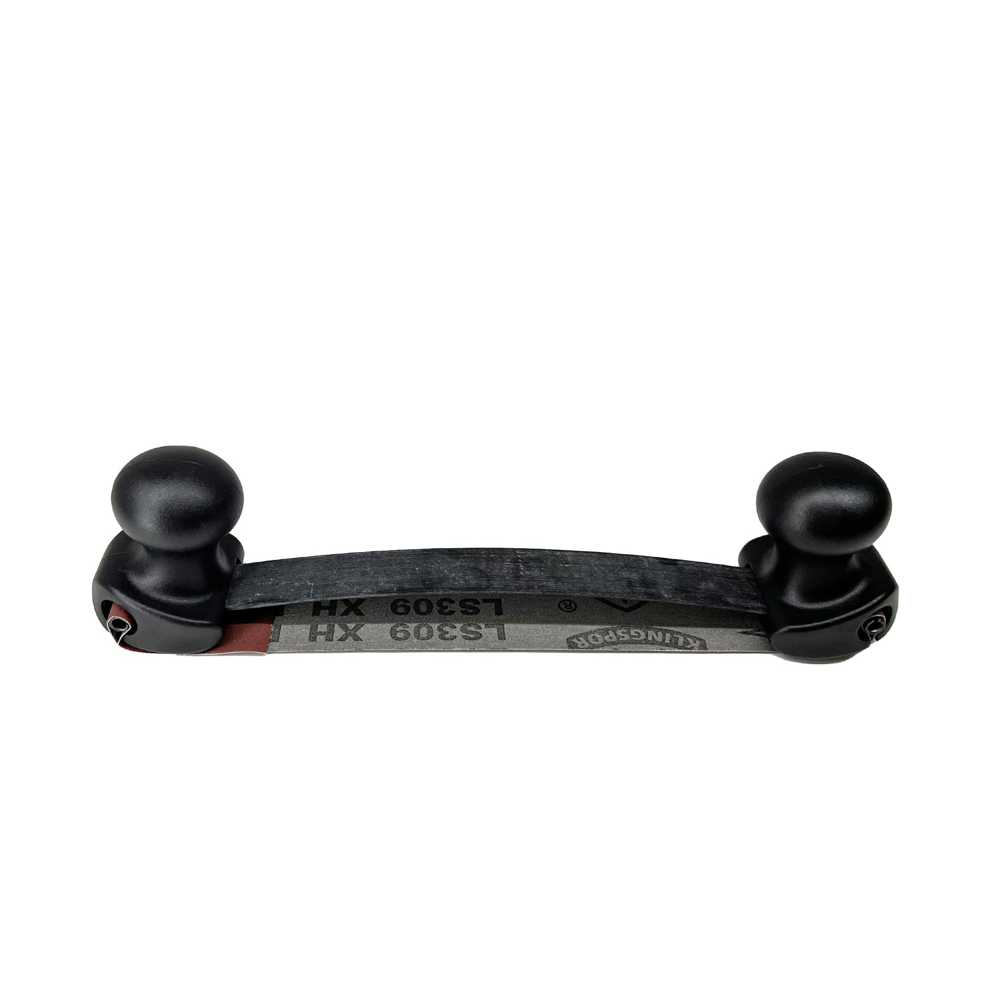 Designed to work with standard sanding belts, they keep the belt tensioned firmly between two ends of a sturdy fiberglass bow. You can bear down on the work, but with no rigid backing, the belt flexes easily to conform to curves. Large knobs at either end let you use a comfortable two-handed grip, helping prevent hand strain when sanding vigorously.