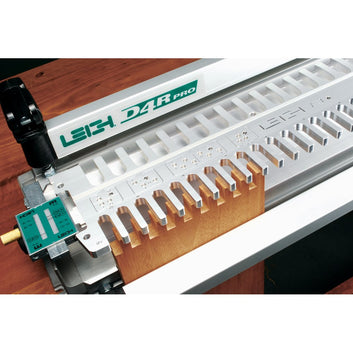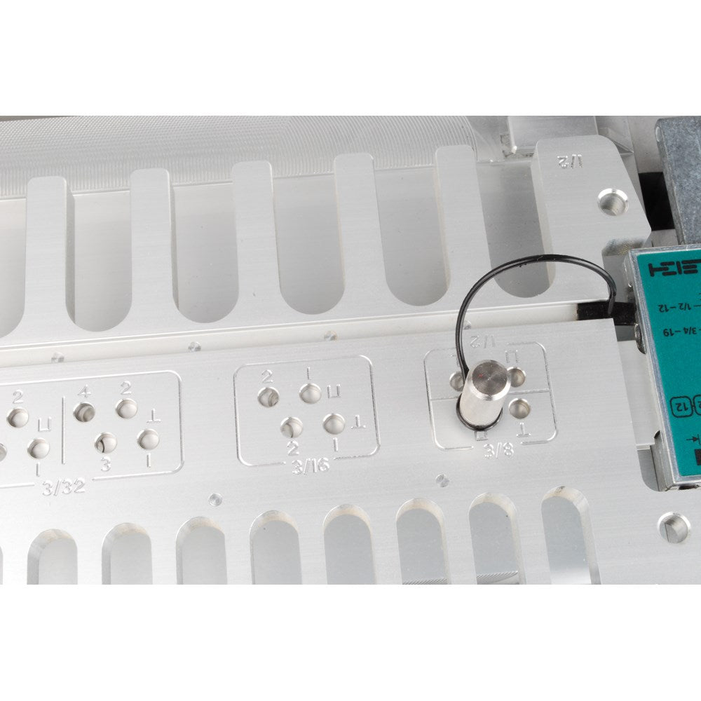 Finger joints; also called box joints; add visually striking symmetrical design to corner assemblies. Unlike dovetails; finger joints do not interlock mechanically but their enormous glue surface area makes them as strong as dovetails throughout the life of today's modern adhesives. Leigh's versatile 24inch F3 Finger Joint Template is the most comprehensive and accurate jig of its kind. The F3 produces 11 sizes of square finger joints from 3/32inch (2.38mm) to 1/2inch (12.7mm) and the F3 can also produce three sizes of square half-blind finger joints.The F3 Template has three comb sizes: 5/16inch (7.9mm); 3/8inch (9.5mm) and 1/2inch (12.7mm). Each comb can produce joints in the comb size and smaller or larger joints. For example; the 5/16inch (7.9mm) comb produces 5/32inch (4mm); 5/16inch (7.9mm) and 5/8inch (15.9mm) joints. Similarly; the 3/8inch (9.5mm) comb produces 3/32inch (2.38mm); 3/16inch (4.8mm); 3/8inch (9.5mm) and 3/4inch (19mm) joints. 1/8inch (3.2mm); 1/4inch (6.35mm); 1/2inch (12.7mm) and 1inch