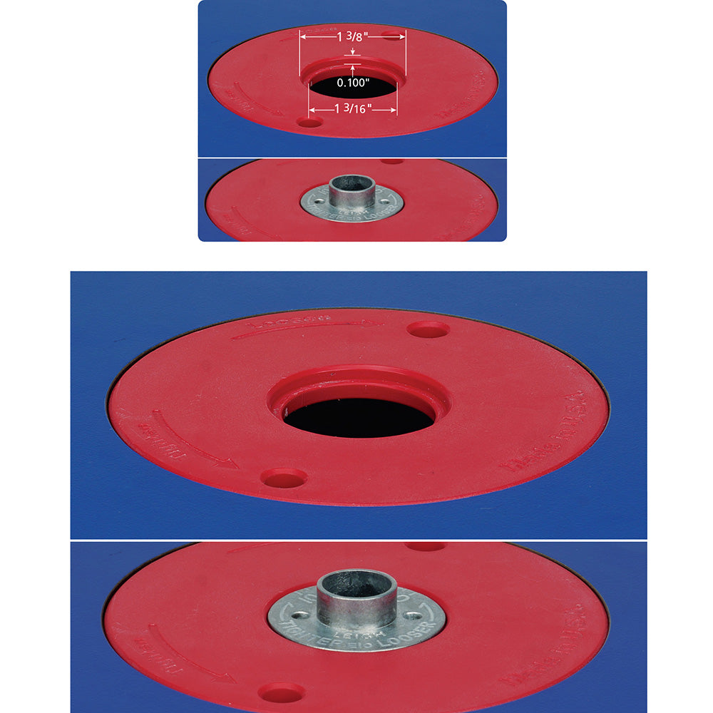 Router RequirementsHandheld RouterWhat Router Should I Use? The TD330 is shipped with two 1/2" shank router bits. Leigh recommends a midsize router, from 1-1/2 to 2-1/4 HP with a 1/2" collet. This size provides great power to weight ratio. Fixed base routers are ideal because they have a lower center of gravity with handles mounted to the router base rather than the motor, as with plunge routers. However, if you are proficient with the use of a plunge router, it works just as well. When buying a router, also consider ergonomics, switch location, a good plunge mechanism and easy, accurate adjustment of bit height.Adaptors for your Router - The TD330 requires a router fitted with the Leigh e10 guide bushing. Leigh offers a range of guide bushing adaptors to fit most common routers if required.Router TableRouter tables are typically used with a bearing or fence, however, the Leigh TD330 is guided around a guide bushing mounted in the router table. Leigh eBushes will need an insert ring to fit to your router table or router plate. Check the images for specific measurements.To fit the eBush to your router table insert plate, you need a 1-3/8" (34.9mm) diameter counter bore insert ring. Check with your router table or router plate (router lift) manufacturer, as to what adaptation, if any, is required.
