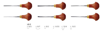 Palm chisels with Pear handles; ideal for small and detailed wood carving or lino print work. Tools are of the same high quality as all Pfeil carving tools; precisely ground and polished. Overall length 125mm. Blade length 70mm.