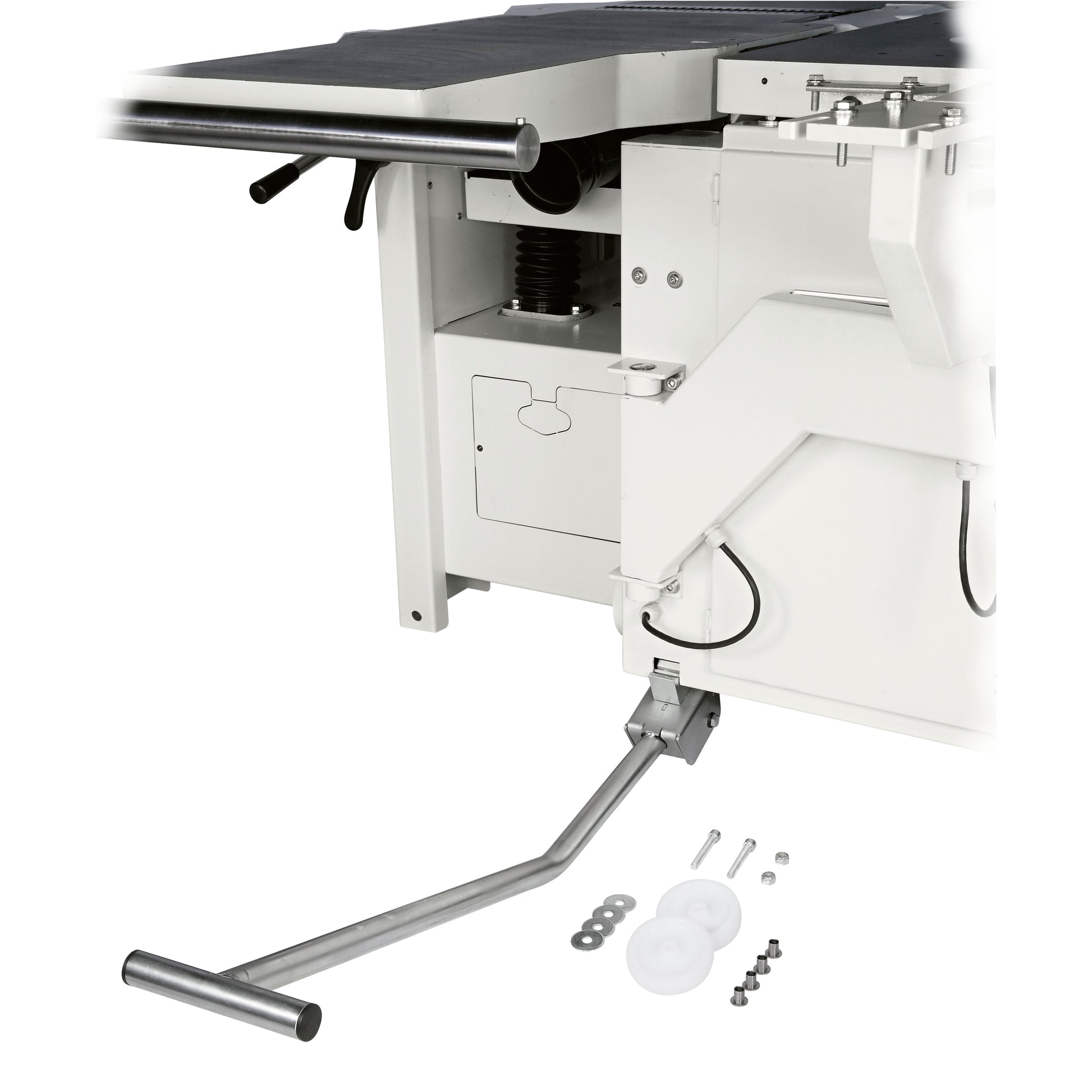 Saw Unit with 315mm maximum blade diameter.Extruded anodized aluminium sliding table (dimensions 270x124x1600mm) sliding on high precision hardened steel guideways.Squaring Frame complete with telescopic fence with 1 retractable stop.Integrated fence for parallel cuts and and surface planing. Adjustable spindle moulder fence with micrometric adjustment complete with vertical and horizontal pressersSecond Spindle Moulder fence for shaped or template workBoth surfacing tables opening at 90 degrees towards the inside of the table.